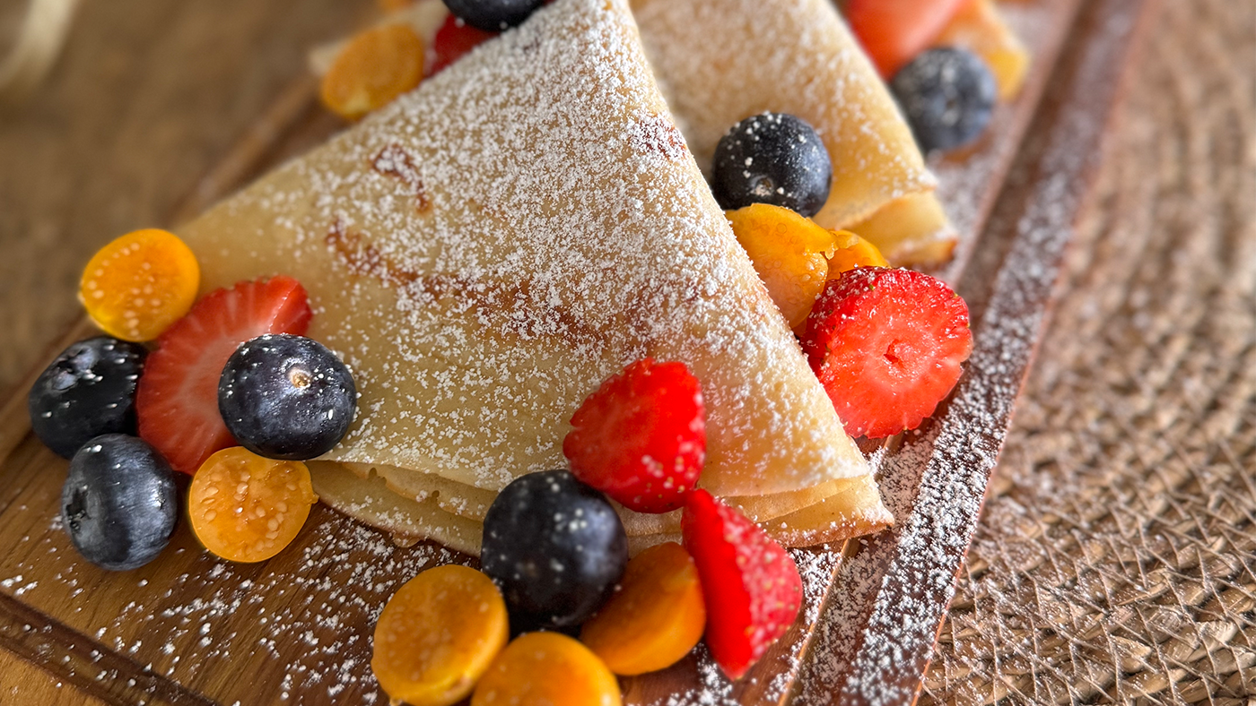 - Rellenar las crepas con tu relleno de preferencia, decorar con frutas de preferencia